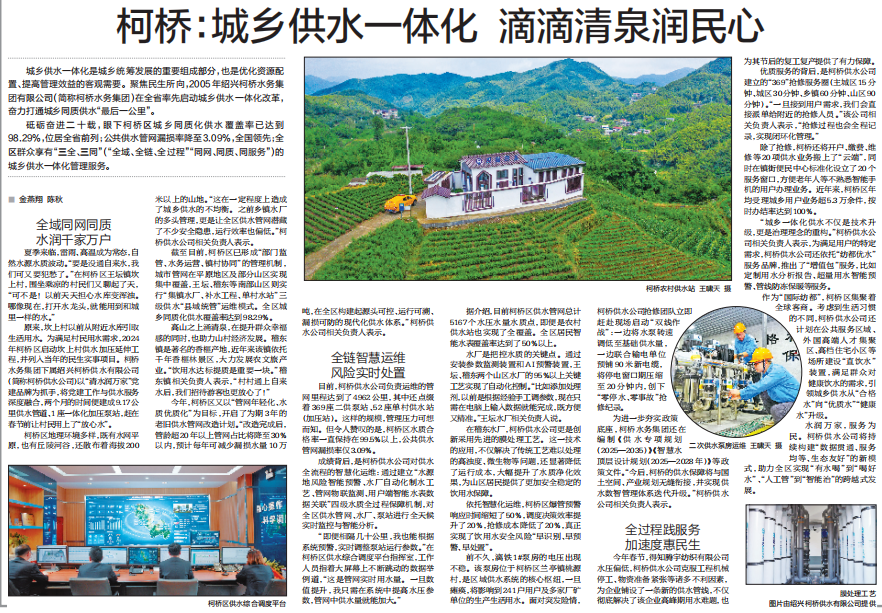 《浙江日報》專版報道!柯橋:城鄉供水一體化 滴滴清泉潤民心