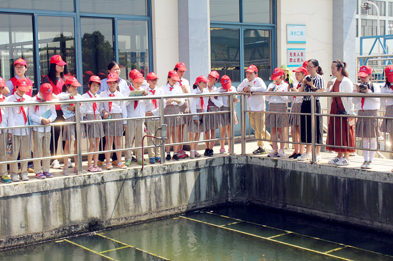 512日,集團公司組織開展“相遇水務·感恩有你”——水務開放日活動,邀請中國輕紡城小學的學生,現場參觀濱海供水公司的制水工藝流程及紹興水處理公司的污水處理流程,以增強學生愛水護水的意識。圖為在志愿者的陪同下學生們參觀濱海供水公司濾池。