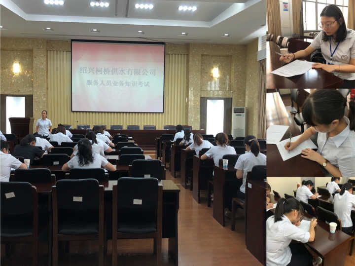 本次考試采用紙質閉卷形式,分填空題、單選題和問答題三種題型,涉及《服務人員行為規范》、《“最多跑一次”改革暨“一窗式”服務實施方案》、《“一窗式”服務指南》、《“柯橋水務”微信公眾平臺管理辦法(試行)》等內容,考試成績與分級考核掛鉤。通過本次考試有效提高了營業大廳服務人員與“96390”客服人員的業務知識水平,進一步嚴肅了服務紀律,提升了服務效能。
