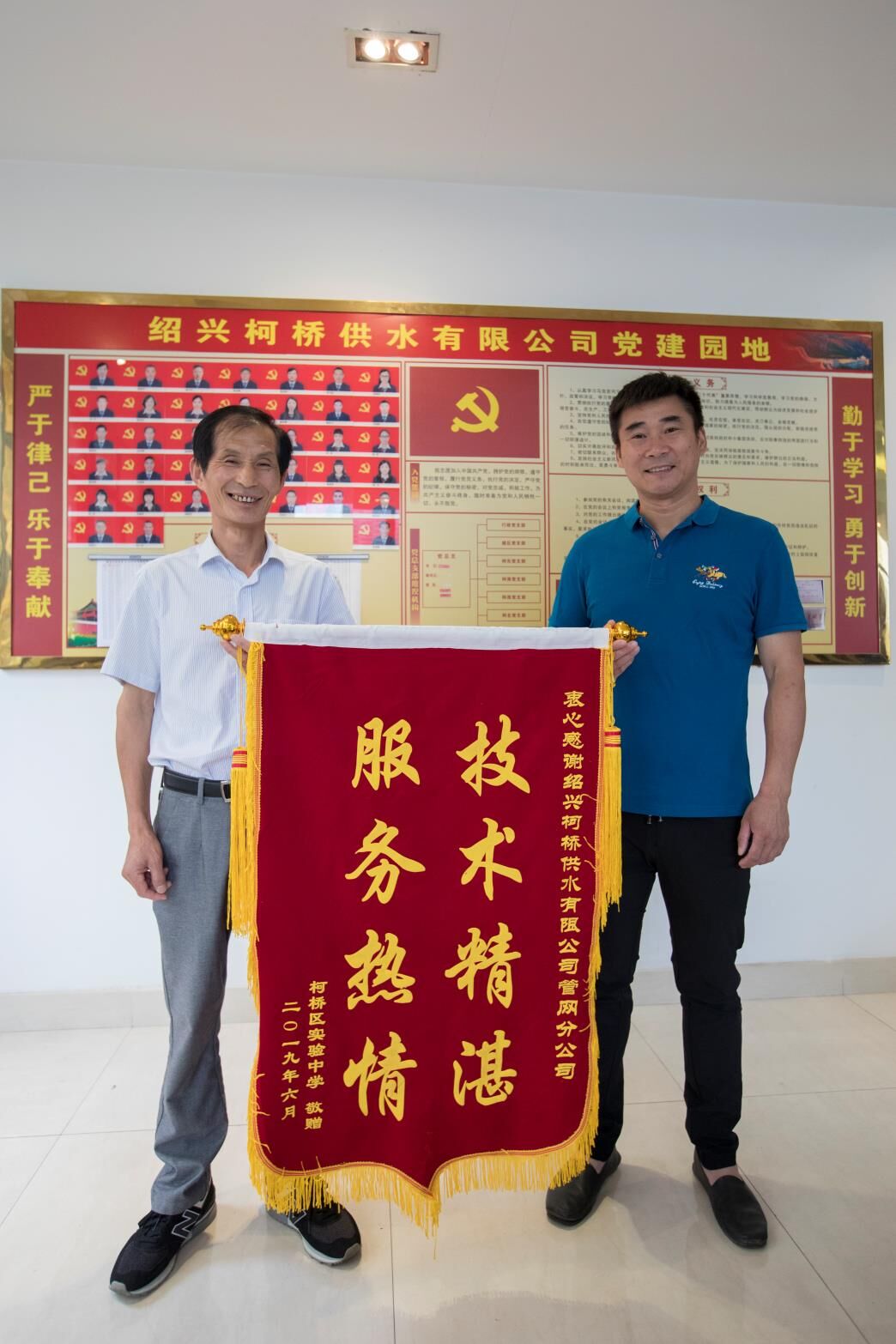 為助力中考,管網(wǎng)分公司立即派出技術(shù)精湛的檢漏班組長上門服務(wù)。經(jīng)過一系列檢查,于當(dāng)晚查出校內(nèi)供水管道漏點(diǎn)3個,切實(shí)解決了柯橋?qū)嶒?yàn)中學(xué)的用水問題。熱情服務(wù)的態(tài)度和精湛的檢漏技術(shù)得到了實(shí)驗(yàn)中學(xué)的肯定和點(diǎn)贊。為此,6月12日,該校總務(wù)科長李強(qiáng)代表柯橋?qū)嶒?yàn)中學(xué)向管網(wǎng)分公司送上錦旗,以表感謝。